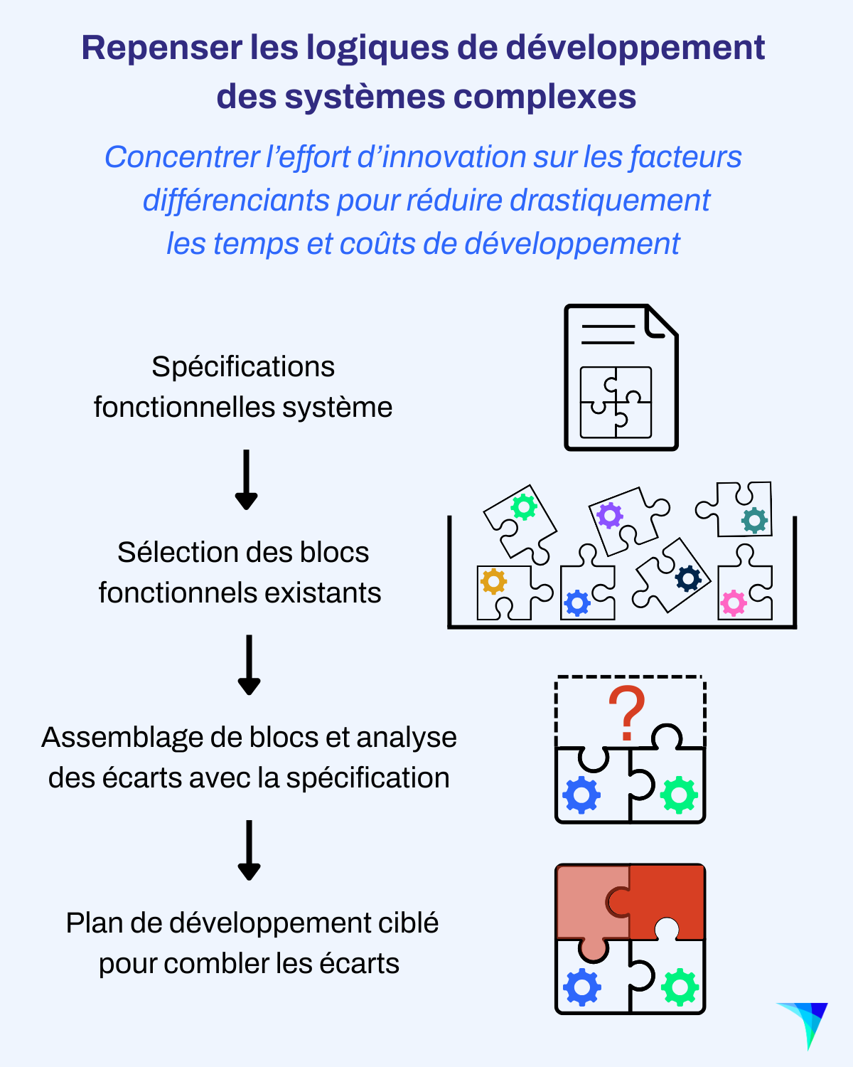 - Référentiel de développement : les grandes étapes du développement produit doivent systématiser la réalisation une « gap analysis » et sécuriser ainsi la réutilisation des blocs existants.